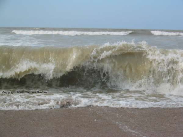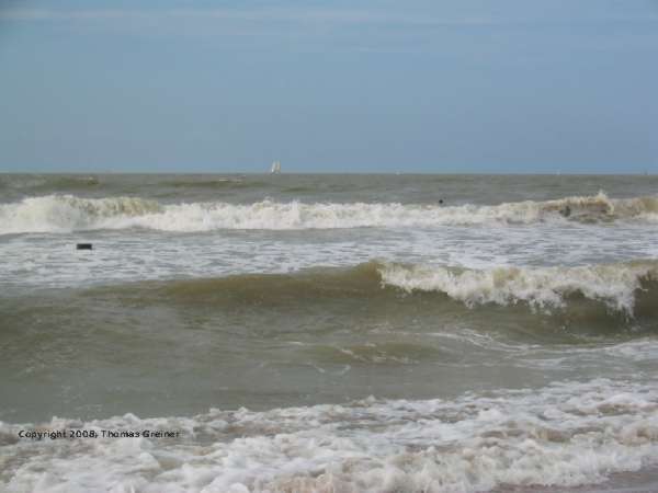 Das sieht doch schon sehr schön aus, eine frische Brise sorgt für eine schöne Brandung. Da ist der Drachen ja nicht umsonst mitgereist. Angenehm umspült das Meerwasser die nackten Füße.