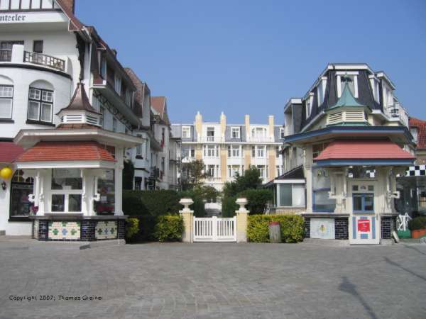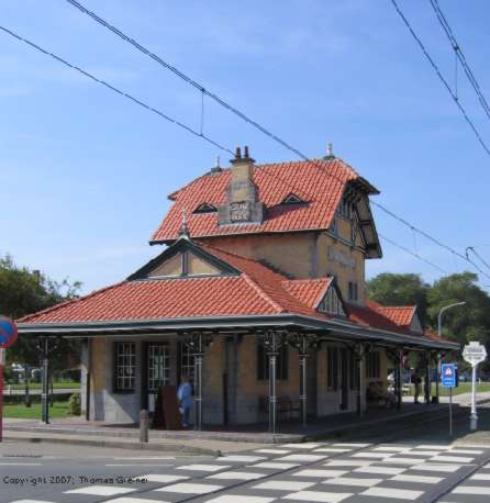 Beginnen wir einfach im Zentrum am Bahnhof, der heutigen Straßenbahnhaltestelle. Dieses Gebäude ersetzte im Jahr 1902 die Blekken Statie von 1886. Der Stiel dieses Gebäudes gibt sehr gut den anglo-normannischen Stil des Villenviertels wieder. Von hier aus folgen wir der Koninklijk Plein ein paar Schritte in Richtung Strand und sehen schon gleich weitere historische Gebäude.