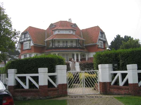 Wenn man der Strasse weiter bis zum Rondell folgt, kann man die oben gezeigte Villa entdecken. Zur Geschichte dieses Gebäudes kann ich leider nichts sagen, aber schöne Villen finden sich überall in De Haan.