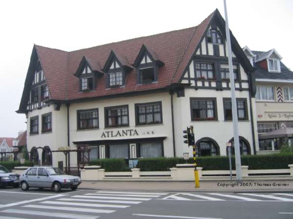 Weiter Richtung Strand folgen wir der Leopoldlaan bis zur Ecke Koninklijke Baan. An der Ecke rechts liegt der Atlanta Komplex, das heutige Hotel Atlanta. Dieses Gebäude hat im Laufe der Zeit verschiedene Funktionen erfüllt. Zunächst als "Villa du Prince Albert" gebaut, der königlichen Villa, wurde daraus im Jahre 1898 das "Hôtel de la Plage".